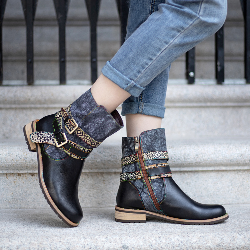 Retro Chunky Heel Embroidery Western Cowboy Boot Women
